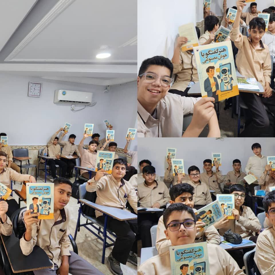 به اطلاع می رساند کتاب؛ *«هنر گفتگو با هوش مصنوعی»* به عنوان *هدیه ویژه روز دانشآموز* به شاگردان استاد تقدیم شد. امیدوارم از خوندنش لذت ببرند و چیزای جالبی یاد بگیرند! اگر شاگردان و والدین همراهی لازم رو داشته باشند قطعا می توانیم کارهای متفاوتی انجام دهیم. با تشکر امیر کمالی مدیر دبیرستان استاد ۱۲ آبان ۱۴۰۴